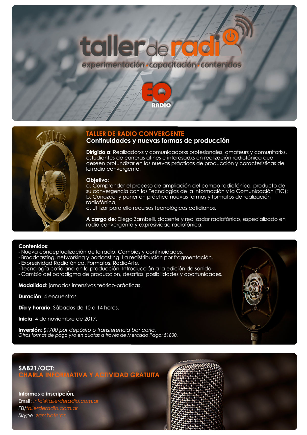¡Ni la pandemia puede pararnos! Respetando el Aislamiento Social Preventivo y Obligatorio, transformamos nuestra propuesta originalmente presencial en RBD Radio a la modalidad virtual y de esta forma, todos los miércoles de 20 a 22.30, nos encontramos para desarrollar los distintos contenidos y prácticas de esta formación que apunta a conocer y aplicar los diversos recursos expresivos de la radio a través de las distintas formas de distribución de contenidos radiofónicos: radio por aire y por Internet, ciberradios, podcast y consumo a la carta u on demand.