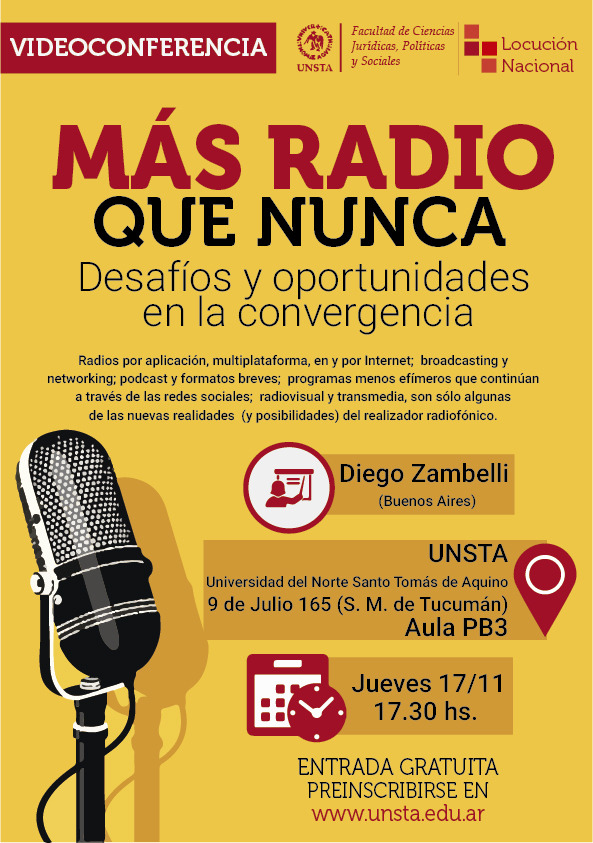 El sábado 17 de junio de 2017, casi 100 estudiantes de la Universidad de Piura (Perú) asistieron a la charla "La ficción y otras sonoridades en la publicidad y propaganda radiofónica" ofrecida por Diego Zambelli por videoconferencia.